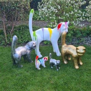 ‘Kato’ is veel meer dan alleen een tuinbeeld; het is een tijdloze toevoeging aan je tuindecoratie die bewondering en vreugde oproept. De strakke zwarte, antiekzilver of antiekgoude vacht van ‘Kato’ contrasteert prachtig met de natuurlijke kleuren van je tuin, waardoor een visueel aantrekkelijke en harmonieuze omgeving ontstaat.